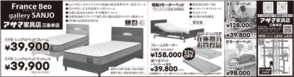 新潟県唯一のフランスベッドギャラリーです。ギャラリーならではのお買い得商品もございます。