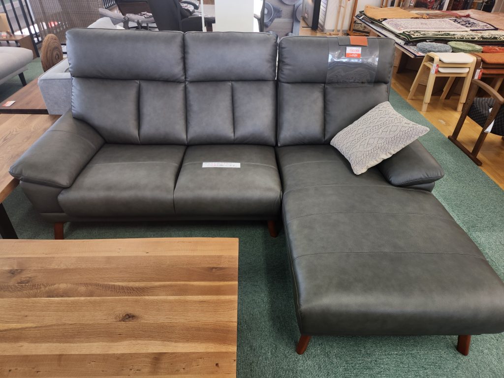 幅230㎝の存在感のあるカウチソファ。ゆったりと座れます。