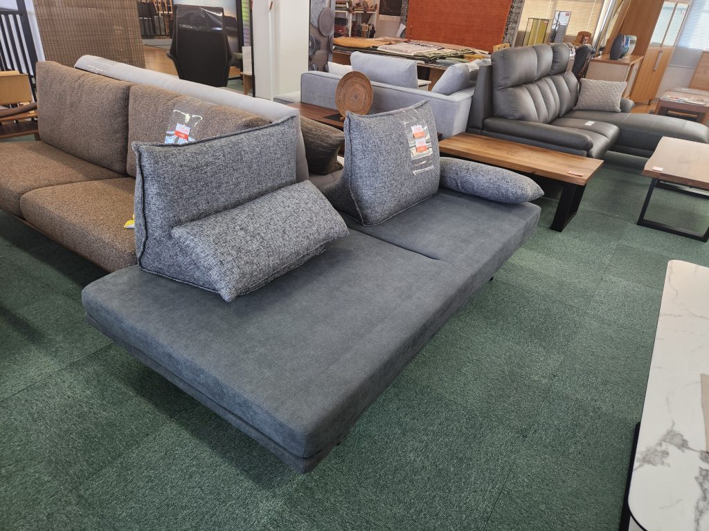 背のクッションが移動できるトレンドの置きクッションタイプ。