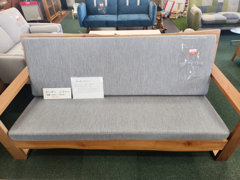 木肘とクッション部の色の組み合わせが選べるカスタム性の高いソファ
